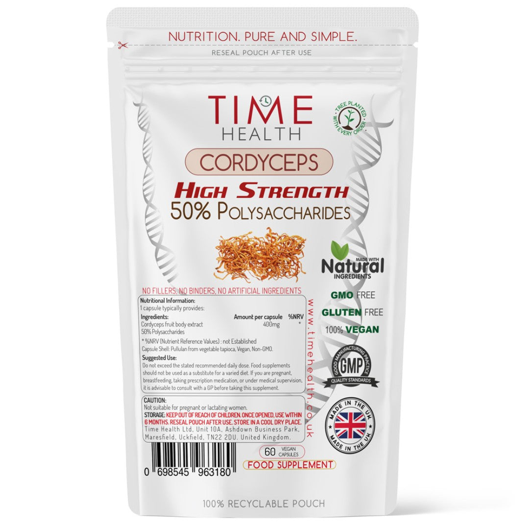 50 % Polysakkarider / 10 % Cordycepsyre / 0,5 % Cordycepin (60 veganske kapsler)